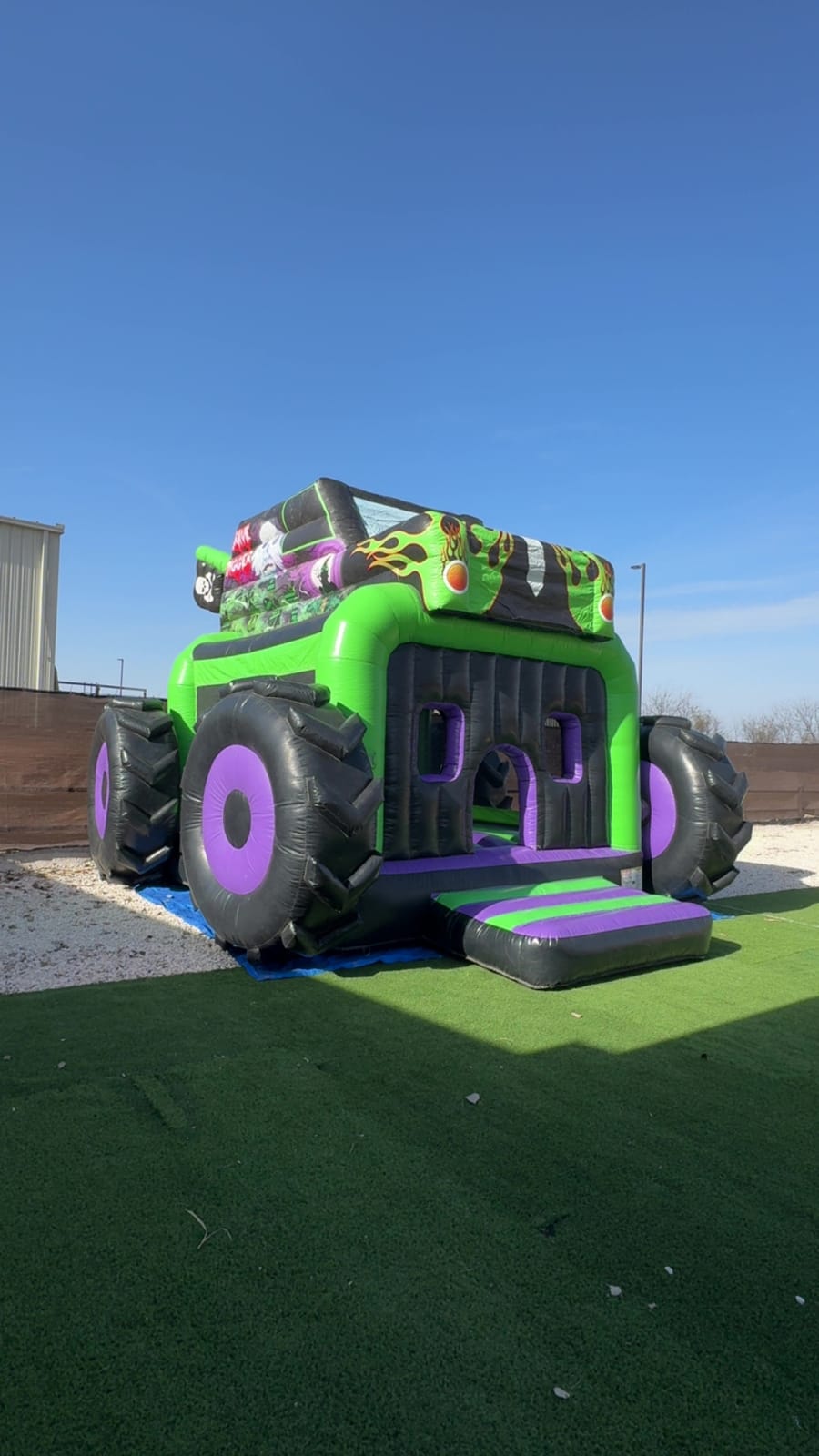 Bring high-octane fun with the Grave Digger monster truck bounce house. This monster truck inflatable measures 15x13 foot wide by 15 foot tall. It looks like a real Grave Digger and delivers show-stopping curb appeal. Ideal for boys 10 and under, and a perfect Halloween inflatable in October 🎃. Durable, safe, and built to thrill.